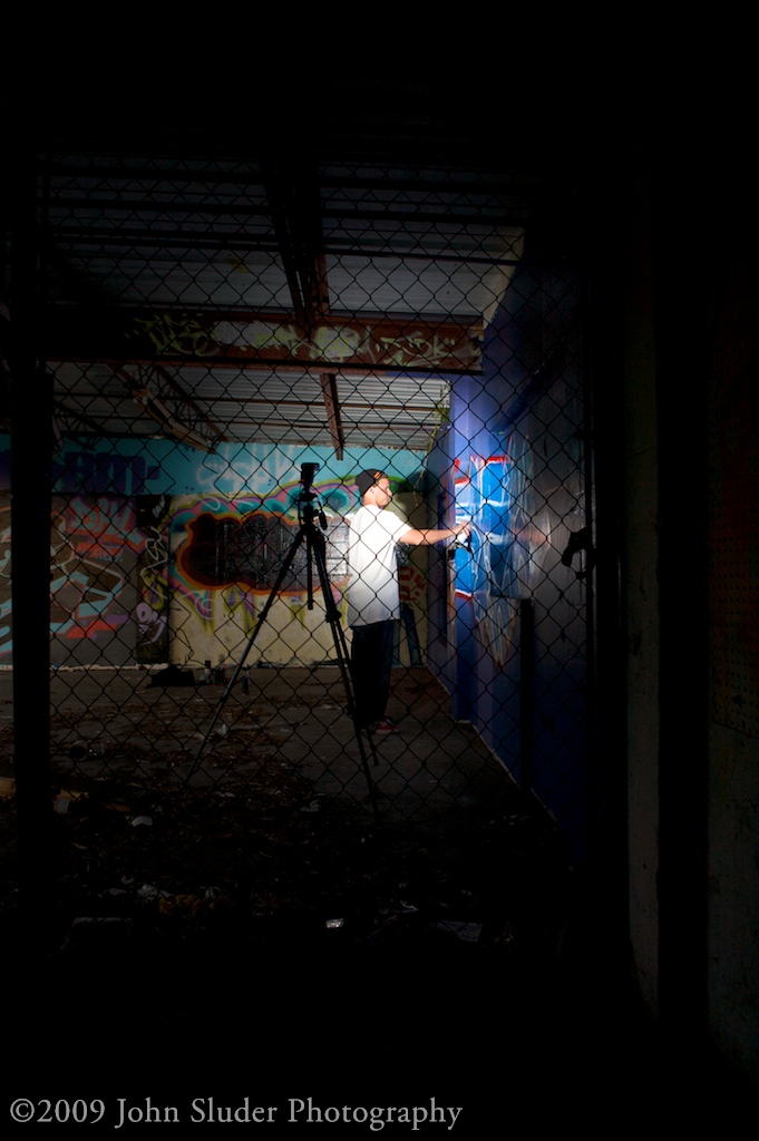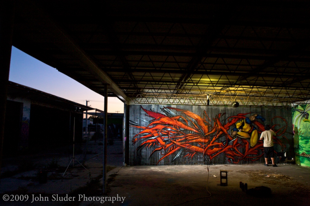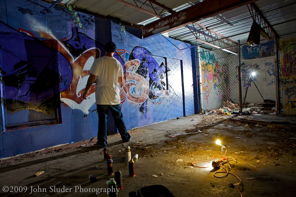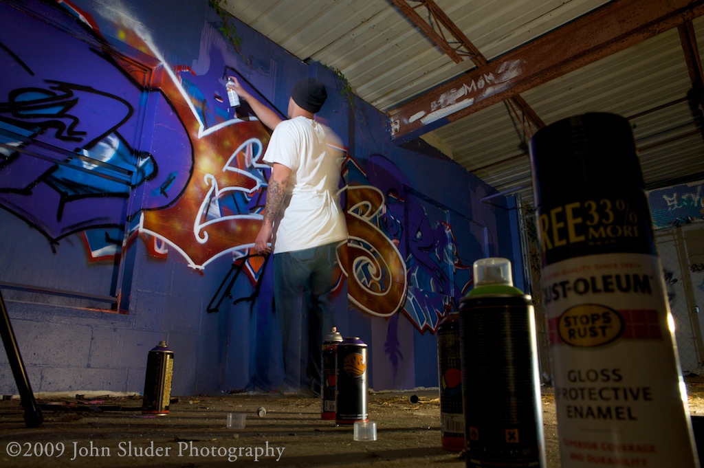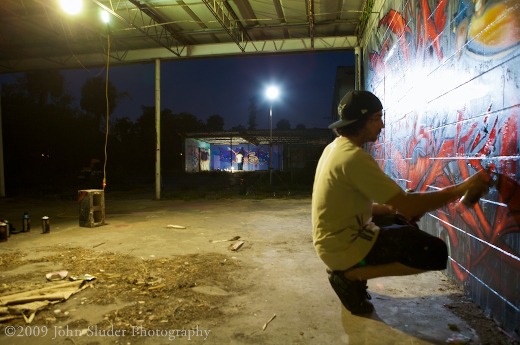 Shoots with graffiti artist is very different that shooting models. I interact a great deal with models. With a model I would instruct them were to stand, how to pose. When shooting a street artist I stand in the shadows and let them work. We speak very little, they slip into their zone and I try to show them working.
