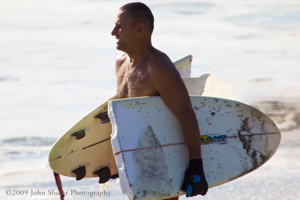 Hurricane Bill is stirring up the surf in the Atlantic. I was shooting with the big lens at 2nd Light,local name for a surf spot. I got there early but the surf spray created a haze that killed any attempt to get a shot of the uncommon big surf breaking locally. The sun light behind the spray of the top of the waves created a blown out ball of light. I thought I was having a bad day, this guy is having a true bad day…