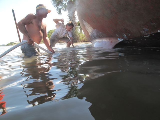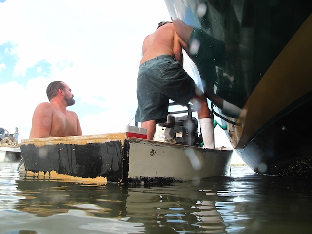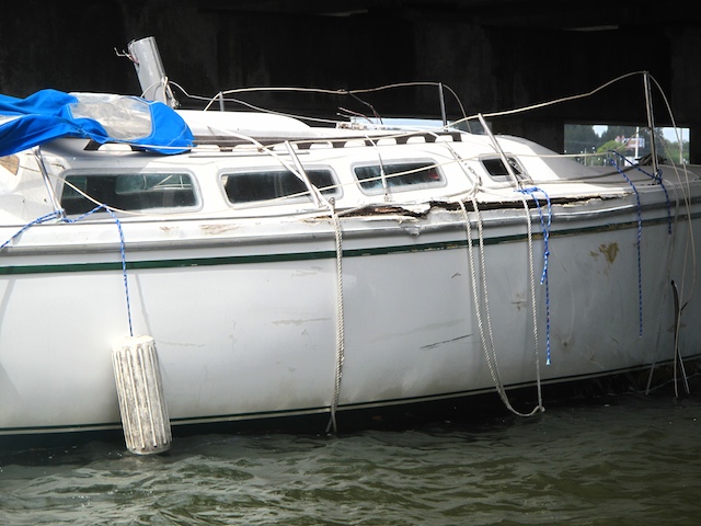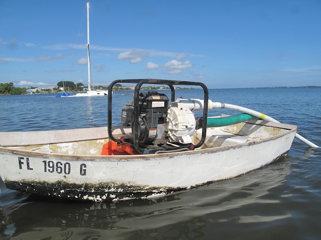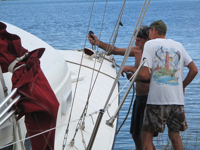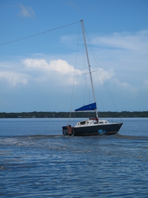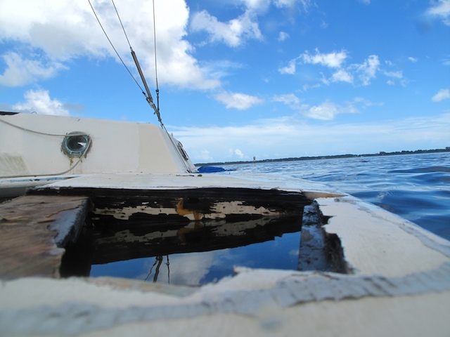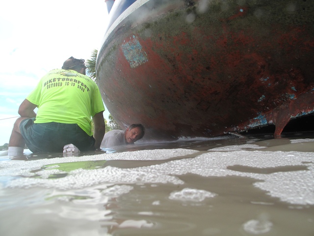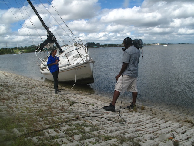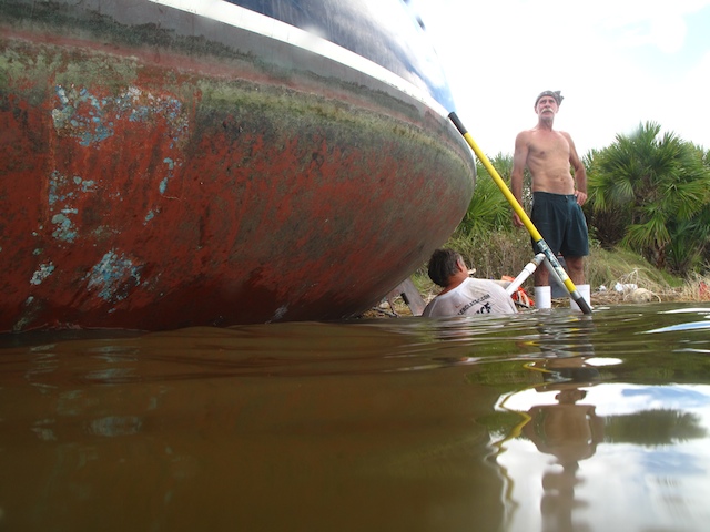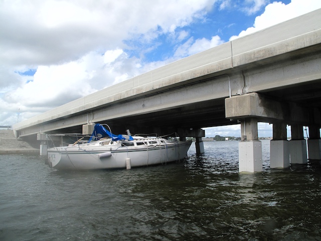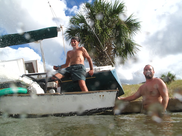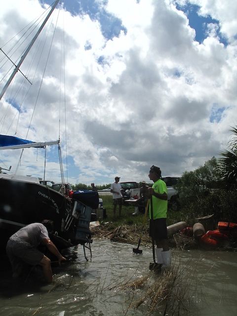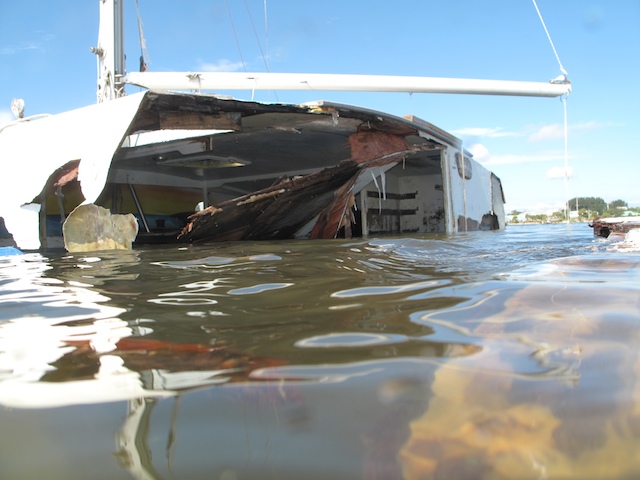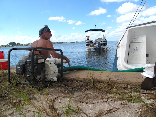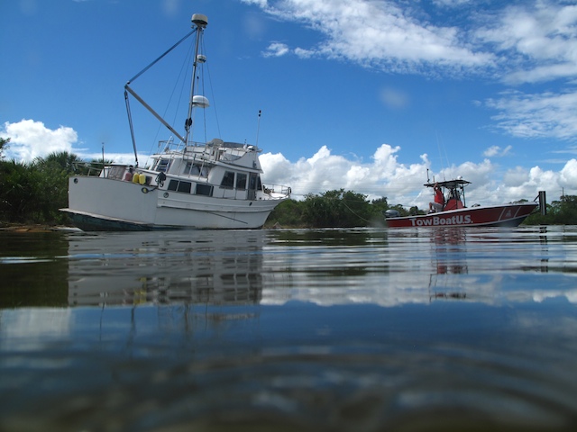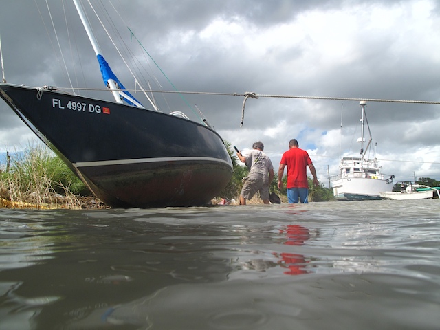 A vicious storm came through Brevard Country on October 9th. Winds came out of the east at fourty plus knots. There is a small harbor north of Pineda Causeway and US1. There are a number of small sail & motor boats moored in the area. The anchor systems failed and all the boats washed ashore from ropes fraying and breaking, and chains failing. Most are recoverable, but a few are either sunk or severely damaged. On Oct 10th I was on hand to watch and help out with the recovery of two boats.